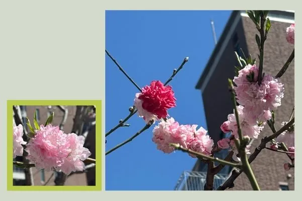 サロンの近くで、一本の木に白と赤の花が混ざり合って咲く、不思議な桜に出会いました。